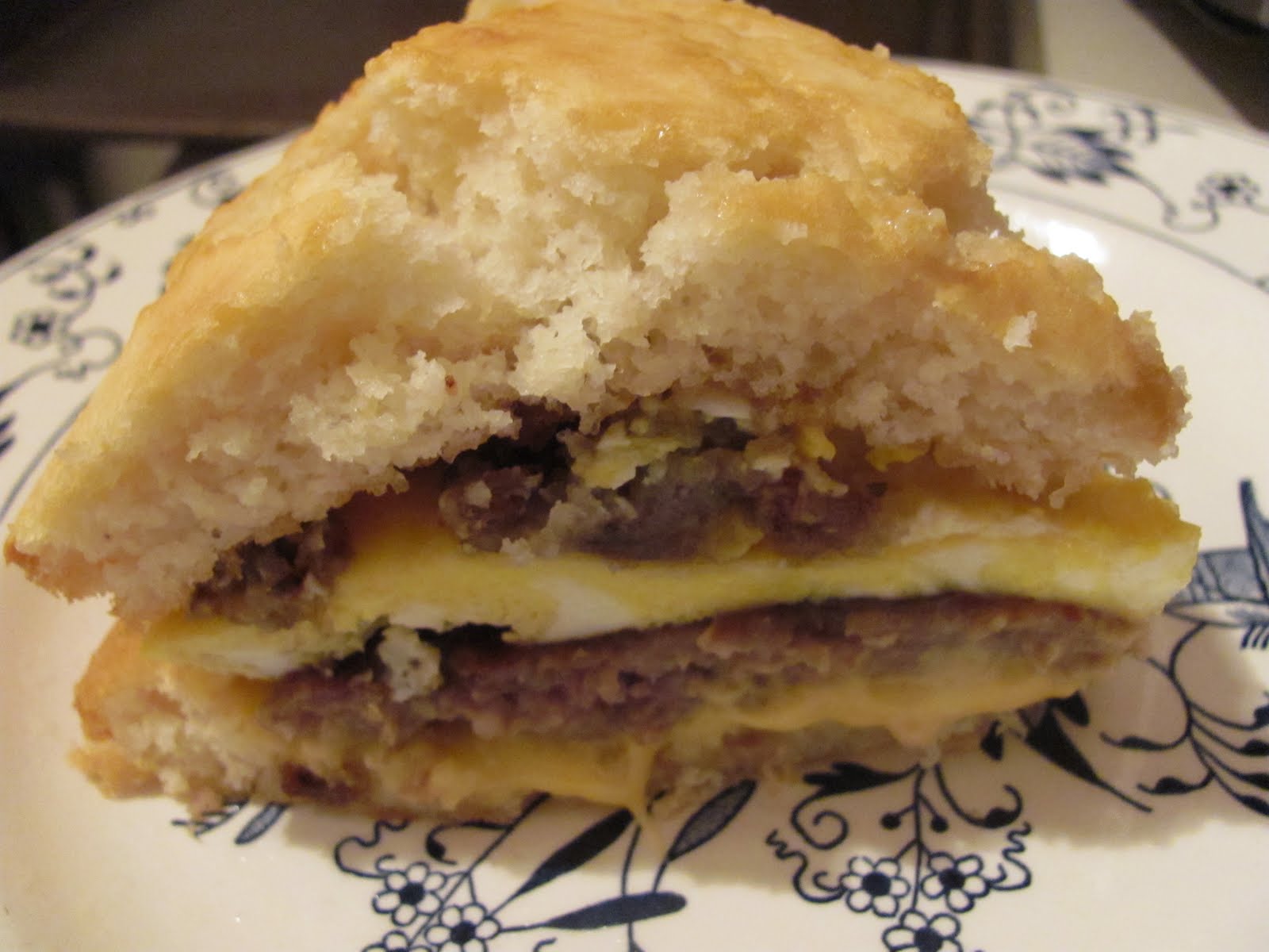 It was delicious. It was homemade. All it needed was a McGriddle as a garnish on top. I'll probably make this soon, possibly tomorrow, and next time I just might make it a double. So easy and so impressive. Lookit that layer cake action! A layer cake made of breakfast! Meat and sweet breakfast! Hella leftovers, too.